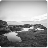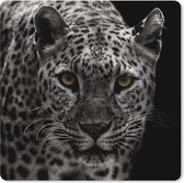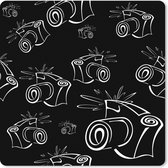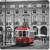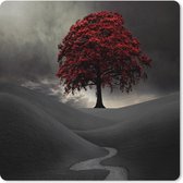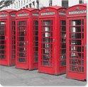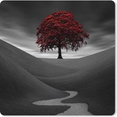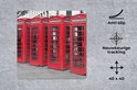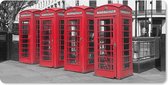 Muismat XXL 40x40 cm - Bureau onderlegger - Bureau mat Zwart-wit foto van vier rode telefooncellen - Bureaumat - Gaming mousepad xl - Bureaulegger groot - Computer deskmat