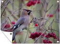 Muurdecoratie buiten Pestvogel in een bessenstruik - 160x120 cm - Tuindoek - Buitenposter