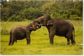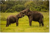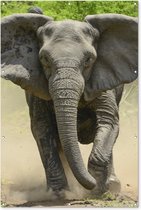Tuinschilderij - Circus" met olifant en aap op een groene achtergrond - Tuinposters buiten