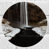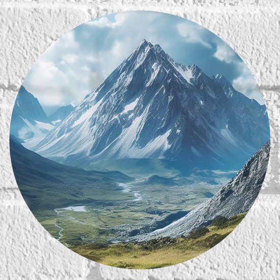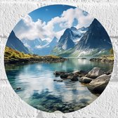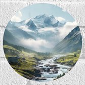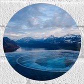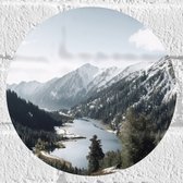 Muursticker Cirkel - Bergen - Rivier - Landschap - Sneeuw - Water - 20x20 cm Foto op Muursticker