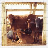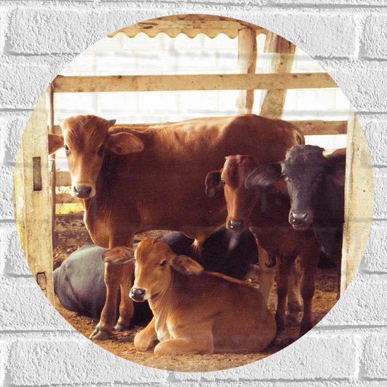 Muursticker Cirkel - Groepje Koeien in Verblijf op de Boerderij - 50x50 cm Foto op Muursticker