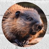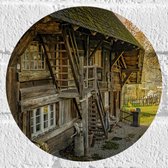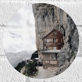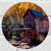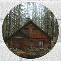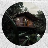 Muursticker Cirkel - Houten Huisje in het Bos - 20x20 cm Foto op Muursticker