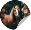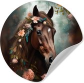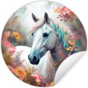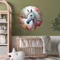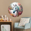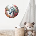 Muurstickers paard - Bloemen - Dieren - Roze - Behangsticker - Behangcirkel zelfklevend - Wandbekleding - Ronde muurdecoratie - 80x80 cm - Muursticker cirkel - Plak stickers - Wall sticker