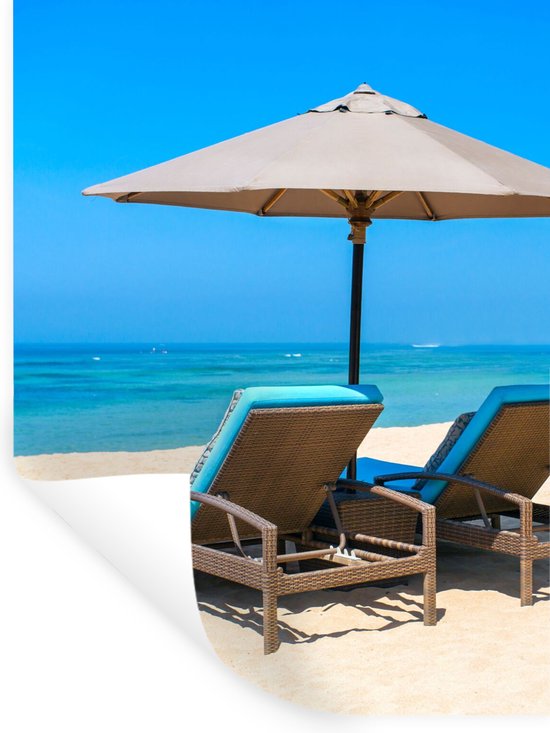 Muurstickers - Sticker Folie - Strandstoel - Parasol - Zomer - Zee - 120x160 cm - Plakfolie - Muurstickers Kinderkamer - Zelfklevend Behang XXL - Zelfklevend behangpapier - Stickerfolie