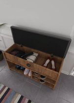 Geen schoenchaos meer in huisDe schoenenbank beschikt over meerdere open compartimenten die ruimte bieden aan verschillende soorten schoenen. Plaats sneakers, sandalen, hakken of enkellaarzen netjes uit het zicht en houd je hal georganiseerd. Extra handig is de verborgen opbergruimte onder de zitting, ideaal voor borstels, handschoenen, sjaals of andere accessoires.