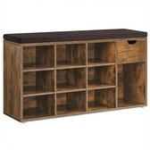Ruimtebesparend en veelzijdigDankzij het compacte formaat past deze schoenenbank moeiteloos in kleinere gangen of hoeken zonder veel ruimte in te nemen. Het tijdloze vintage design in donkerbruin is eenvoudig te combineren met andere meubels en interieurstijlen, van modern tot industrieel.