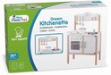 Gekocht voor ons dochtertje van 1,5 jaar. Zocht een houten keukentje dat compacter was dan dat van Ikea. Mooi verpakt en op 15 minuutjes in elkaar gezet. Alle onderdelen zijn veilig en pasten perfect in elkaar. Op 1 dagje al uren speelplezier gehad! Het hele gezin is hier blij met deze aankoop :-)