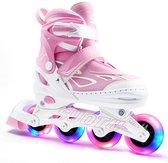 Nu de wat meer technische specificaties: Het PP high-impact chassis is van hoge kwaliteit en goed bestand tegen een stootje. De PU gegoten wielen geven je een uitstekende grip op de weg. PU wielen slijten minder snel dan bijvoorbeeld rubberen of kunststof wielen, ze hebben de sterkte van kunststof en de elasticiteit van rubber. De ABEC 5 carbon lagers zijn kwaliteitslagers en o.a. goed geschikt voor gebruik buiten. De inlineskates zijn voorzien van een TPR rem.