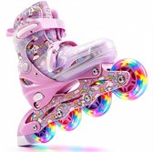- Wielen: PU gegoten 82A, maat 25-28: 64 x 24 mm, maten 29-32, 33-36 en 37-40: 70 x 24 mm