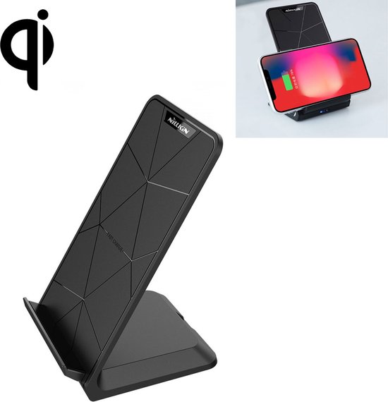NILLKIN MC018 DC 5V 2A / 9V 1,7A Input 10W Max. Uitgang Qi Standaard Dual Coils Draadloze opladerhouder Standaard, voor iPhone, Galaxy, Huawei, Xiaomi, LG, HTC en andere QI standaard smartphones