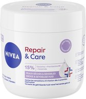 NIVEA's gepatenteerde formule is verrijkt met VERZORGEND SERUM, een unieke samenstelling van het huideigen hydraterende vermogen, verzorgende lipiden en voedende olin. NIVEA Repair & Care Body Crme is speciaal ontwikkeld in samenwerking met een dermatoloog. De Body Crme bevat verzachtend Dexpanthenol en versterkt de huidbarrire om vochtverlies van de huid te voorkomen. Na slechts 1 applicatie verlicht de rijke formule de ruwe, trekkerige huid. Bij regelmatig gebruik voelt de droge, gerriteerde huid zacht aan en is 72u gehydrateerd. De huid is beter beschermt tegen uitdroging omdat er meer water in de huid wordt vastgehouden en verlies van vocht wordt verminderd. De laatste testmethodes tonen aan dat de combinatie van de hoge kwaliteit ingredinten van onze NIVEA body milks en lotions samen met het VERZORGENDE SERUM ervoor zorgen dat de formule diep in de huid trekt en 72u lang een voelbaar zachtere huid geeft.