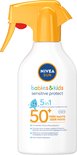 NIVEA SUN Babies & Kids Sensitive Protect Zonnebrand Spray - Baby en Kind - SPF 50+ - Zonnespray - Eczeemgevoelige huid - Parfumvrij - Waterbestendig - 270 ml