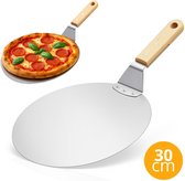 Nonna pizzaschep RVS Ø25,5 - Pizzaspatel rond - BBQ of oven - Houten handvat - Lengte: 43 cm