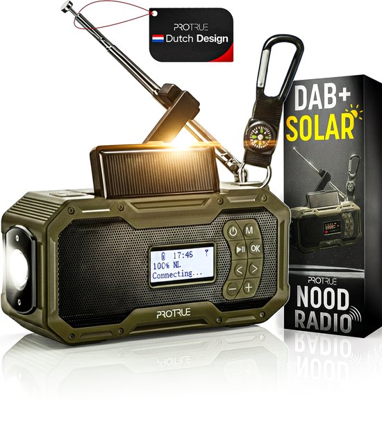 Met de ProTrue Noodradio haal je zekerheid, informatie en entertainment in huis. Of je nu een fervent kampeerder bent, een survivaltocht plant of gewoon voorbereid wilt zijn op stroomuitval: de ProTrue Nood Radio is jouw ultieme redmiddel. Deze radio onderscheidt zich van de concurrentie door zijn krachtige 5000 mAh batterij, zonnepanneel, DAB+/AM/FM radio functies, de nieuwste Bluetooth 5.3 verbinding en een complete uitrusting inclusief kompas en karabijnhaak.