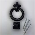 Robuuste zwarte deurklopper met ring, landelijke stijl.