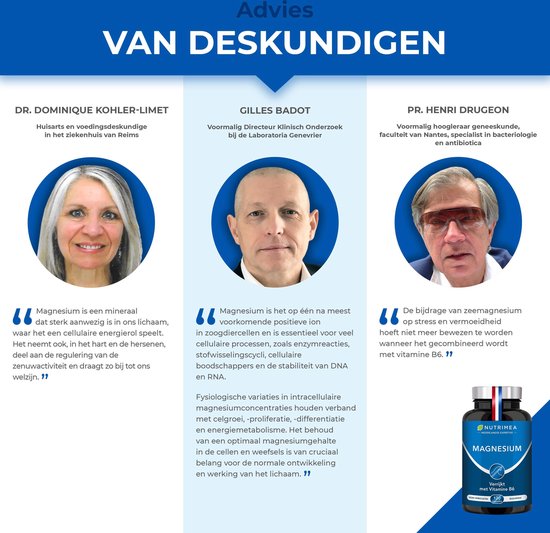 Gefabriceerd in Frankrijk volgens de kwaliteits-en veiligheidsprocedures (gewaarborgd ISO22000/HACCP/GMP/geregistreerd DCCRF). Magnesium van NUTRIMEA is natuurlijk en afkomstig uit de zee. De capsules zijn van plantaardige afkomst, zonder GGO. Geschikt voor vegetariërs en vegans.