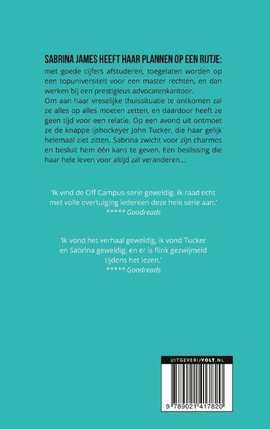 Ik vond de eerste 3 delen van de Off campus serie echt leuk om te lezen. Dit vierde deel sprak mij persoonlijk minder aan en ik vond het minder goed in de serie passen. Leuk is wel dat de personages uit de eerdere delen weer langs komen. Prettig was het wel om te luisteren naar dit verhaal door de stemmen van Nathalie van Gent (Sabrina) en Frans van Dijk (John Tucker) en ook het einde is leuk.