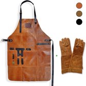 Hide & Stitches Leren BBQ Schort - Gift Box - Barbecue - Grill - 100% Leder - Cognac