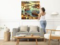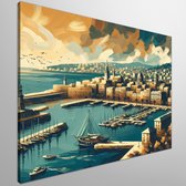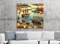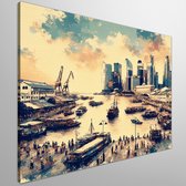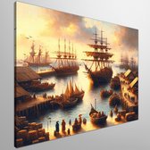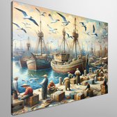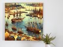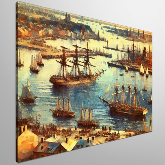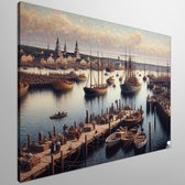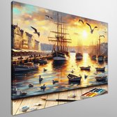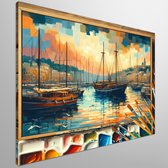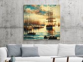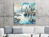 Olieverf haven schilderij | Haven van verf: een maritieme ode aan kleur en textuur | Kunst - 40x40 centimeter op Canvas | Foto op Canvas