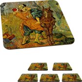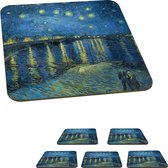 Onderzetters voor glazen - Zicht op Arles - Schilderij van Vincent van Gogh - 10x10 cm - Glasonderzetters - 6 stuks