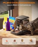 - We hebben de doseertechnologie van de rotor geüpgraded, waardoor de maximale deeltjesgrootte van kattenvoer dat kan passeren met 50% is verhoogd. Dus onze automatische kattenvoerdispenser kan niet alleen gewoon droogvoer bevatten, maar ook mengsels, vries- gedroogd voedsel en snacks voor katten