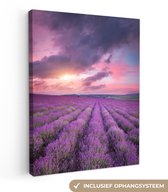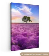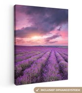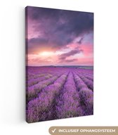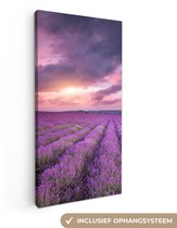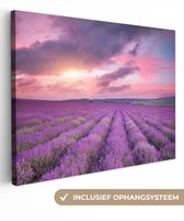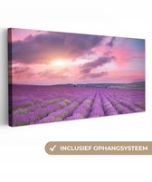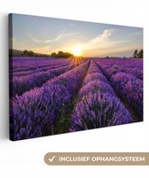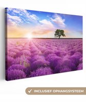 OneMillionCanvasses - Canvas - Schilderij - Bloemen - Lavendel - Zon - Wolken - Paars - Canvas bloemen - Foto op canvas - 120x80 cm - Schilderijen op canvas - Muurdecoratie