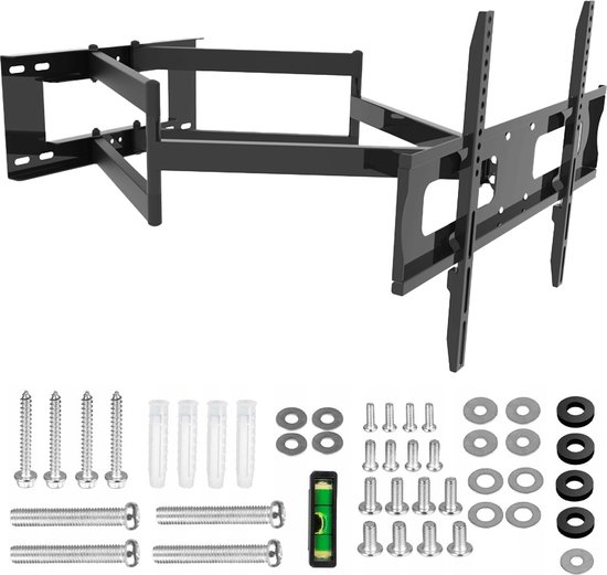 Mocht het niet direct lukken om de TV volledig waterpas te hangen, dan biedt de ingebouwde level adjustment functie de mogelijkheid om de TV eenvoudig recht te stellen, zelfs na installatie. Vanwege de extra lange armlengte en de specifieke montage-eisen, wordt een professionele installatie sterk aanbevolen om te zorgen voor maximale stabiliteit en veiligheid.