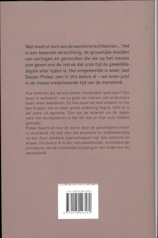 Hoe komt het dat we ons zoveel menselijker gedragen? Ons leven is verbeterd - en zo gaan we indirect andermans leven meer waarderen. En hoe meer we met anderen te maken krijgen, des te meer groeit onderling begrip, zelfs al is dat soms uit egoïsme. Pinker laat zien dat empathie en zelfbeheersing op den duur sterkere eigenschappen zijn dan sadisme en wraak. Ons beter ik is een indrukwekkende, onmisbare geschiedenis van de menselijke omgang en een boek voor de eeuwigheid.