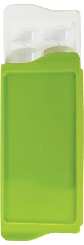 Dankzij het slimme ontwerp van het deksel haal je precies het aantal blokjes dat je wil uit het diepvriesbakje: van eentje tot allemaal tegelijk. De afgeronde vorm van de vakjes zorgt er bovendien voor dat de blokjes makkelijk loskomen.