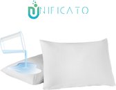 Ademend bamboo stof: Aan de andere witte kant van de buitenste hoes bevindt zich een hoogwaardig bamboe stofmateriaal. Deze natuurlijke vezels zorgen voor een uitstekende luchtcirculatie en vochtafvoer, waardoor je hoofd koel en droog blijft gedurende de hele nacht. Het zachte en duurzame bamboe stof voelt heerlijk aan op je huid en draagt bij aan een gezonde en rustgevende slaapomgeving en is meer voor de koudere winternachten.