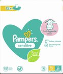 Je baby’s gevoelige huid verdient de vertrouwde huidbescherming van Pampers. Pampers Sensitive Billendoekjes zijn klinisch getest zachter dan reinigen met katoen en water. De unieke pH-balancerende formule helpt huidirritatie voorkomen doordat ze de natuurlijk pH-waarde van de huid bewaart. Pampers Sensitive babydoekjes zijn speciaal ontwikkeld voor de verzorging van je baby’s gevoelige huid en bevatten geen parfum of alcohol. Deze babydoekjes zijn dermatologisch getest, waardoor ze geschikt zijn voor gebruik vanaf de geboorte van je baby.