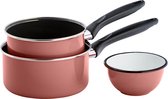 Lite-Body Pannenset - 3-delig - 2 kookpannen & 1 steelpan - Emaille - Serafijn roze