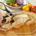 Bijzonder scherp goed in de hand liggend mes. Schaar mooi pluspunt. Vlees - kip - knippen geen probleem.