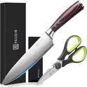 PAUDIN N1 Professioneel Koksmes Inclusief Keukenschaar - Japans mes - Keukenmes - Koksmes 20 cm - Damascus mes