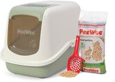 Met het EcoDome Startpakket van Peewee heb je gelijk alles in huis voor een schone en frisse bak. Dit startpakket bevat een gesloten kattenbak, een koolstoffilter (om nog meer vieze geurtjes tegen te gaan), een kattenbakschep en 3 kg PeeWee kattenbakkorrels.