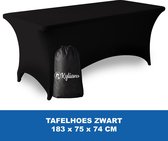 Zoektermen: hoes overtrek beschermhoes tafel tafelhoes tafelrok tafelkleed bistrotafel bar verjaardagsfeest bruiloft biertent barbecue stretch elastisch rekbaar spandex elastaan rechthoekig wasbaar zwart