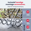 Dankzij de meegeleverde montage accessoires kun je de afweermatten gemakkelijk en stevig bevestigen op verschillende ondergronden.