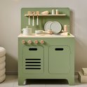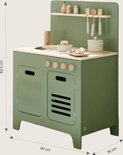 Wat eten we vanavond? Misschien net als mama en papa, of juist iets heel anders? Met de prachtige olijfgroene houten speelkeuken van Petite Amélie kan je kind eindeloos fantaseren en de heerlijkste gerechten bedenken. Of het nu soep, pannenkoeken of pizza is, kleine chefs kunnen hier hun creativiteit helemaal kwijt. De speelkeuken is gemaakt van hoogwaardig materiaal, stevig en robuust, zodat het jarenlang speelplezier biedt. Het olijfgroen gecombineerd met wit en hout zorgt voor een ingetogen, maar toch opvallende uitstraling in elke kamer.Deze speelkeuken is het perfecte cadeau voor kinderen vanaf 3 jaar die graag meehelpen in de keuken. Hij wordt geleverd met een lichtgrijze 13-delige houten keukenset, die apart ook te bestellen is. Voor nog meer speelplezier is er een extra set verkrijgbaar met borden, bestek, keukengerei en een pannenset, allemaal mooi afgewerkt in mintgrijs en naturel hout. Zo wordt koken spelen, en spelen koken! Eet smakelijk!