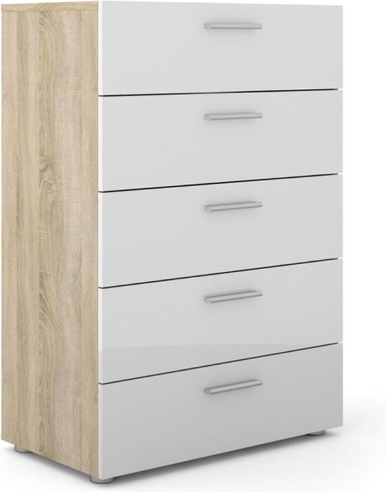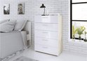 Petra kommode 5 lades eiken decor en wit hoogglans.