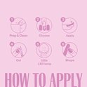 Houd het stickervel boven je nagel en kies de sticker die het beste past. Zorg dat het Pink Gellac-logo aan de rechterkant zit. Verwijder voorzichtig het beschermfolie. Kies bij twijfel een iets smallere sticker om vroegtijdig loslaten te voorkomen. Is de sticker te breed voor jouw nagels? Knip de sticker dan bij in het juiste formaat. - Stap 2: Aanbrengen en uitharden