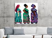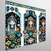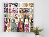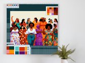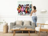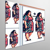 Pixel art dikke dames schilderij | Volumineuze vrouwen verrijken pixelkunst met uitbundige kleurenpracht | Kunst - 100x100 centimeter op Dibond | Foto op Dibond