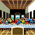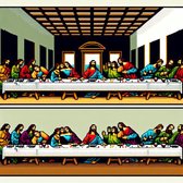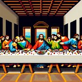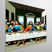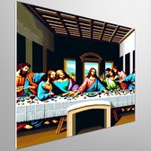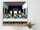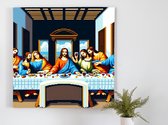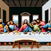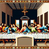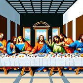Pixel art laatste avondmaal schilderij | Het Laatste Avondmaal herschapen met kleurrijke pixels in kunstwerk | Kunst - 80x80 centimeter op Dibond | Foto op Dibond
