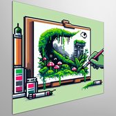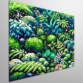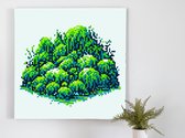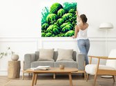 Pixel art mos schilderij | Groen getinte pixelkunst brengt de natuur tot leven | Kunst - 50x50 centimeter op Dibond | Foto op Dibond