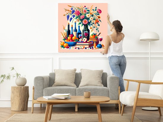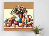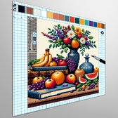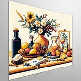Pixel art stilleven schilderij | Digitale meesterwerk: Verfijnd stilleven van pixels en kunstwerkenceffect | Kunst - 60x60 centimeter op Dibond | Foto op Dibond