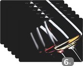 Placemat - Placemats kunststof - Wijnglas - Wijn - Alcohol - 45x30 cm - 6 stuks - Hittebestendig - Anti-Slip - Onderlegger - Afneembaar