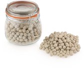 De bakbonen van Point-Virgule bieden het perfecte alternatief voor de bonen die onze grootmoeders vroeger gebruikten tijdens het 'blind bakken'. Blind bakken is een manier om een ervoor te zorgen dat een bodem juist niet gaat rijzen. Je bakt als het ware de bodem voor of gaar, waardoor je een krokante bodem krijgt. Leg de bakbonen met een diameter van 1cm in de met deeg beklede taartvorm voordat deze de oven ingaat en kijk hoe ze hun magische werk verrichten. Dankzij de bakbonen wordt de warmte gelijkmatig verdeeld, waardoor uw taartbodem zijn vorm behoudt en het bladerdeeg niet begint te rijzen. Blindbakbonen van Point-Virgule zijn verpakt in een emmer per 600g bakbonen met een diameter van 1cm. Deze verpakking is genoeg voor een flinke taart. Gemaakt van keramiek en onbeperkt herbruikbaar.