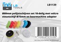 LB Tools professionele polijstset 10-delig met 80mm polijstschijven en velcro steunschijf Ø 75mm, boormachine adapter en 8 stuks polijstpads in verschillende kleuren van hard naar zacht zodat je goed kunt polijsten in de juiste volgorde en makkelijk kunt onthouden welke kleur pad je hebt gebruikt voor een bepaald soort polijst of poetsmiddel. Zeer geschikt voor o.a. autolakken en doffe koplampen maar ook voor andere opjecten zoals zoals boten en piano's.