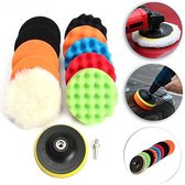 Wat er wordt meegeleverd als je dit product bestelt. - Professionele polijstset Ø 80mm 10 delig met velcro steunschijf M10 aansluiting voor polijstmachine, losse boormachine adapter. Geschikt voor polijsten van autolakken, koplampen, pianolak enz. Inhoud: 1x Poetswol 1x Polijstschijf foam groen superfijn 1x Polijstschijf foam medium fijn 1x Polijstschijf foam blauw fijn 1x Polijstschijf foam zwart medium 1x Polijstschijf foam oranje grof 1x Polijstschijf foam geel 1x Polijstschijf foam rood 1x Steunpad / velcro pad 1x Booradapter