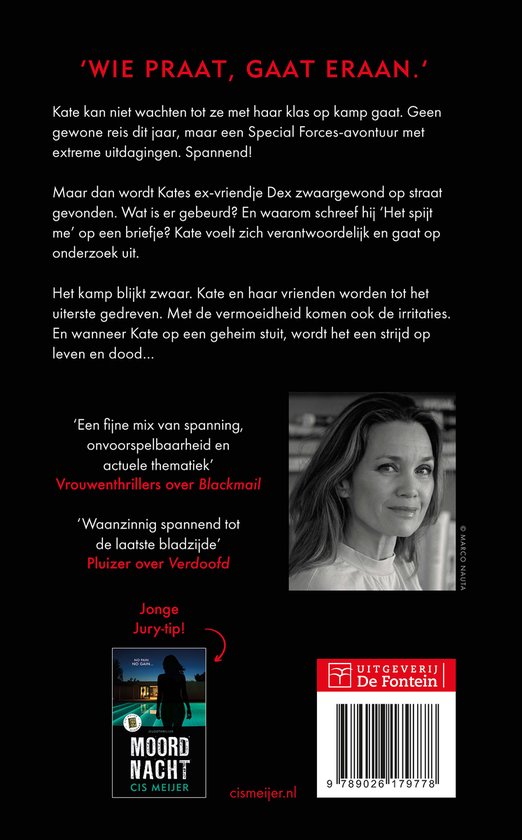 Kate kan niet wachten tot ze met haar klas op kamp gaat. Geen gewone reis dit jaar, maar een Special Forces-avontuur met extreme uitdagingen. Spannend! Maar dan wordt Kates ex-vriendje Dex zwaargewond op straat gevonden. Wat is er gebeurd? En waarom schreef hij ‘Het spijt me’ op een briefje? Kate voelt zich verantwoordelijk en gaat op onderzoek uit. Het kamp blijkt zwaar. Kate en haar vriendengroep worden tot het uiterste gedreven. Met de vermoeidheid komen ook de irritaties. En wanneer Kate op een geheim stuit, wordt het een strijd op leven en dood…
