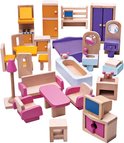 Poppenhuis Meubeltjes - BIGJIGS - Hout - Meubels Poppen - 26-Delig